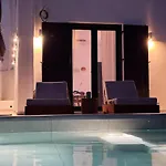 Kukulu Luxury Pool Studio - Mykonos Private Oasis Ano Mera villa is located 3.9 km from the Fokos Beach and invites guests to enjoy a terrace. Guests can enjoy yoga at the holiday home, located 15 minutes by car from the Boni's Windmill.
